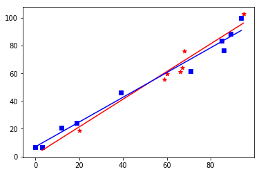 Para ello vamos a considerar que realizamos dos procesos de extracción de datos y conseguimos dos conjuntos de entrada de diez valores cada uno. Imaginemos que nos dos procesos independientes, llevados a cabo por equipos separados, uno de ellos consigue el conjunto representado por los cuadros azules, el otro equipo consigue los datos representados por los asteriscos rojos. Podemos ver el resultado en la Figura3.