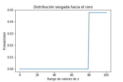 En esta ocasión nuestra creencia a priori estará muy sesgada hacia un extremo pero con valores nulos en el otro. Es decir creemos que está en un extremo y estamos absolutamente seguros de que NO lo está en el otro: